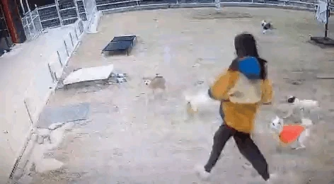 애견유치원에서 선생님이 넘어지면 생기는 일