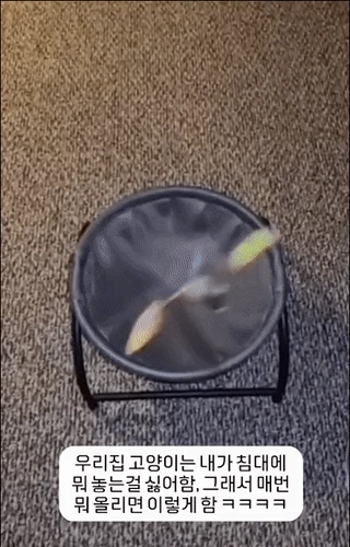 우리집 고양이는 내가 지 침대에 뭐 놓는걸 싫어함